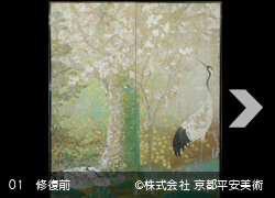 剥落止め、補彩色による屏風の修復前後がご覧いただけます。