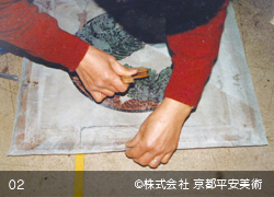 天井画をはじめ「彩色修復」には目に見えない様ざまな工程があり、その工程の一つひとつが今日に至る日本の文化財を支えてきました。伝統技法には、数多くの手間と時間を必要とします。そうした昔ながらの技法を受け継ぎつつ、新しい工法をも採りいれ、その場しのぎで終わらない、数百年先まで命脈を保つ「価値ある修復」になるものと信じています。